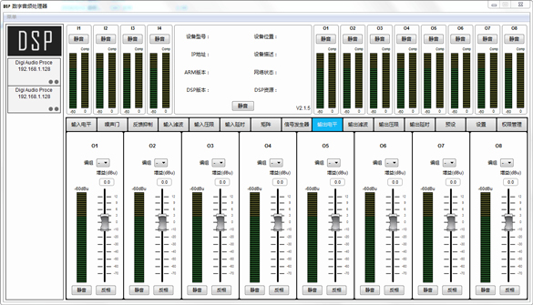 本4進8出的音箱處理器,使用最新的第四代SHARC ADSP-21488 400Mhz浮點DSP,具有強大的DSP處理能力。每個輸入、輸出有16段參數濾波器,增益控制、噪聲門功能、RMS壓限、內置的粉紅/白噪聲發生器,以及可調的延時。分頻器的斜率從6dB/Oct48dB/Oct范圍內可選。延時步進精度0.02ms,電平增益精度0.1dBu,滿足現場精細調節。AD-DA動態范圍114dBu。系統動態范圍110dBu。每個輸入通道包含噪聲門,反饋抑制器,壓限器。100M以太網接口。PC軟件自動發現處理器。32種系統預設。通道參數快速拷貝。 ■可通過以太網升級DSP、ARM固件。 ■最大輸入電平 18dBu;最大輸出電平 18dBu;默認輸出電平 0dBu。 ■諧波失真THD+N <0.003%;1kHz@+4dBu<0.0035%;1kHz@+10dBm;<0.0035%;20Hz~20kHz@+4dBu。 ■頻率響應 20Hz-20kHz, +/-0.2dB。 ■輸入到輸出動態范圍 110dB (無記權);信噪比 -110dB (無記權。 ■ADC動態范圍 CS5361 114dB;DAC動態范圍 CS4382A 114dB。 ■DSP 400Mhz浮點 SHARC ADSP-21488。 ■采樣頻率 48K;量化 24Bit;模式存儲 32。 ■壓限器 前后獨立共12個: 延時器 輸出1-4 218ms。
