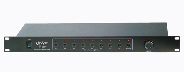 功能參數(shù) ◆ 十路麥克風(fēng)48V幻象供電; ◆ 兩路主席,八路代表; ◆ 主席與優(yōu)先發(fā)言的代表可以同時(shí)發(fā)言,優(yōu)先代表發(fā)言時(shí),其它代表通道將自動(dòng)衰減 -40dB,當(dāng)優(yōu)先發(fā)言的代表停止發(fā)言時(shí),間隔三秒后其它代表菜可正常發(fā)言; ◆ 采用先進(jìn)的聲控電路設(shè)計(jì),正常發(fā)言聲控開關(guān)自然切換,由混音器智能操作完成,無代表發(fā)言時(shí),代表系統(tǒng)自動(dòng)關(guān)閉每路麥克風(fēng),能高效率控制會(huì)議程序,有效地抑制嘯叫; ◆ 十路智能混音器設(shè)有總音量調(diào)節(jié),每路麥克風(fēng)設(shè)有5cm-50cm拾音距離任意調(diào)節(jié),調(diào)節(jié)時(shí)視環(huán)境場(chǎng)合調(diào)節(jié)好最佳的拾音距離。本混音器可以任意擴(kuò)展串聯(lián),簡(jiǎn)易方便,其功能不變,串聯(lián)后,第二臺(tái)起主席均取消。