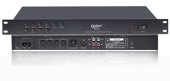 SY-6610主控機的基本特性 ◆ 具有三組8P-DIN插座用于系統多路連接,每路最多可以控制16套列席單元,常規產品可以聯接48套會議系統列席單元,附加 擴容設備可增至聯接500套以上的列席單元。 ◆ 功率:50W ◆ 具有平衡線路輸出接口;左右線路輸出接口;及不平衡輸出接口以適應各種設備連接方式。 ◆ 本機本身不帶功放及喇叭,需與功放及音響組合使用。 ◆ 本機采用220V~交流供電。 ◆ 本機外觀輕巧,可平放置于臺面或安裝于19英寸標準機柜中。