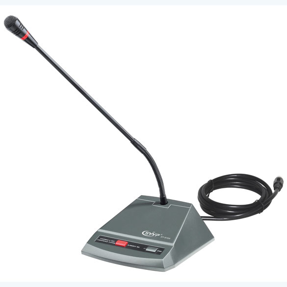 SY-610B代表單元: ◆ 頻率響應:100-16000Hz; ◆ 靈敏度:-40 dB±2dB ◆ 拾音距離: 20~80cm ◆ 單元由系統主機供電。輸入電壓為18V直流電,屬于安全范圍 ◆ 單元具有發言單鍵與指示燈,可自由控制發言狀態 ◆ 開機講話時,紅色燈環同時發光,可明確指示出正在發言人的位置. ◆ 使用電容式咪芯,咪管采用可繞式設計,并配可更換式防風罩, 話 ◆ 筒桿具有加長型可供選擇。 ◆ 使用手拉手方式聯接