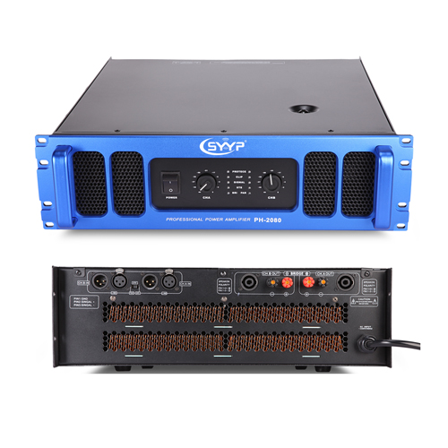 PH系列功放采用高檔鋁合金面板,電路采用先進(jìn)的貼片技術(shù),獨(dú)特的H類放大電路設(shè)計(jì),工作效率高,機(jī)器更加穩(wěn)定耐用。散熱風(fēng)扇采用了智能無極變速電路,開機(jī)軟啟動(dòng),防浪涌設(shè)計(jì),更好的保護(hù)了后級(jí)電路。內(nèi)設(shè)壓限電路,對(duì)末端音箱起到了更好的保護(hù)作用。完善的保護(hù)電路,過熱保護(hù)、短路保護(hù)、直流保護(hù)、射頻干擾濾波保護(hù)。本機(jī)適用于流動(dòng)演出、高級(jí)會(huì)所、電影院及多功能廳等場(chǎng)所。技術(shù)指標(biāo): 輸出功率/POREA 8Ω 800×2 1000W×2 1200×2 1400×2 輸出功率/POREA 4Ω 1200W×2 1600W×2 1900W×2 2200W×2 信噪比:>102dB 輸入阻抗:平衡20KΩ / 非平衡10KΩ 輸入靈敏度:0db/1V 頻率響應(yīng):20Hz~20KHz ±0.15dB 轉(zhuǎn)換速率:50V/us 通道隔離:105dB (1KHz) ;80dB (20KHz) 阻尼系數(shù):8Ω/1KHz﹥450 連接器:輸入:XLR公母座;輸出:接線柱和Speakon座 交流輸入電壓:AC220-250V/50~60Hz" 3U外型尺寸:485x540x132mm 3U外型尺寸:640x590x180mm