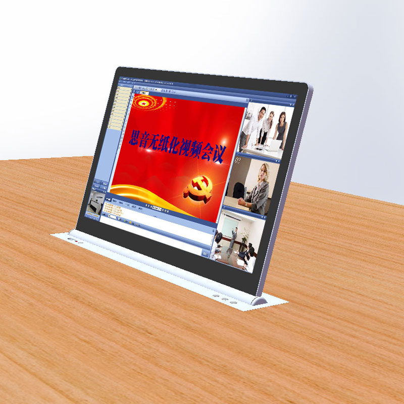 產(chǎn)品本身內(nèi)置LED顯示屏,超薄機身和鋁合金精拉絲氧化面板結(jié)構(gòu),齒合式直線導(dǎo)軌傳動方式,機械防夾手設(shè)計,一體化機身防護,外觀無螺絲,產(chǎn)品使用安全可靠,美觀大方。外置VGA、DVI、HDMI等多重信號接口和RS232/485控制接口,產(chǎn)品在啟動時,液晶顯示屏升降器從箱體內(nèi)部升出桌面并自動為顯示屏供電,產(chǎn)品設(shè)有智能仰角0-15°可調(diào)節(jié)角度功能,滿足各個人群的顯示屏仰角使用需要。當產(chǎn)品使用完成需要關(guān)閉時,顯示屏自動返回升降隱藏于箱體內(nèi)部并自動斷開顯示屏電源,起到保護顯示屏并節(jié)約用電的作用。產(chǎn)品具有防盜、防塵、和保持桌面平整清潔,會議場所整齊有序等功能。本系列產(chǎn)品可按客戶要求定制。