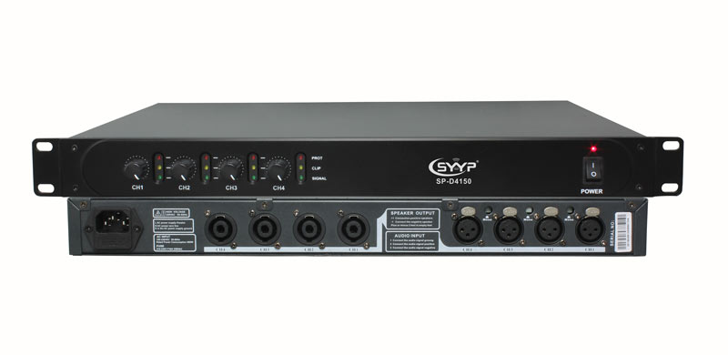 D4150技術參數: 8Ω立體聲音樂功率:4x150W 4Ω立體聲音樂功率:4x200W 輸入連接器:XLR母 輸入阻抗:10KΩ平衡 輸入靈敏度:0.775V 輸入共態抑制比:>80dB 輸出連接器:Speakon座 信噪比:>103dB 阻尼系數:> 400 @ 8Ω 總諧波失真:<0.05%(20 Hz-20 kHz 1W) 頻率響應:20Hz-20KHz(+0/-1dB,1W/8Ω) 電平調節:前板電位器, 冷卻方式:無級調速風扇,氣流由前到后 功放保護方式:短路、斷路、直流電壓、過熱、過壓 電源規格:交流電壓180-240V 50-60Hz 機箱尺寸(高*寬*長):44mmX483mmX298mm 包裝尺寸(高*寬*長):105mmX550mm×370mm 凈重:4.5KG 毛重:5.5KG