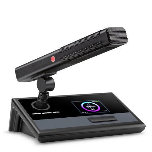 ■ 獨特外觀設計,整體高檔莊重,符合現代審美標準 ■ 電磁及射頻干擾設計,遠離手機信號對會議的干擾; ■ 會議單元采用新型防嘯叫單指向高靈敏度電容咪芯,使會議聲音幾近完美; ■ 帶有高亮度2.4寸彩色高檔顯示屏,顯示發言開啟和關閉 ■ 話筒具有計時功能,開戶話筒馬上從秒開始計時發言時間。 ■ 單元具有電量顯示、欠壓警告、頻率信道和信號指示等功能; ■ 主席單元具有發言提示音及優先發言功能(PRIOR),可隨時切斷其它代表單元發言 ■ 可拆卸旋轉式咪桿,連接方便牢固; ■ 咪桿具有紅色光環指示燈,工作狀態一目了然; ■ 超低功耗設計,采用普通電池或充電鋰電池,超長待機,操作方便。